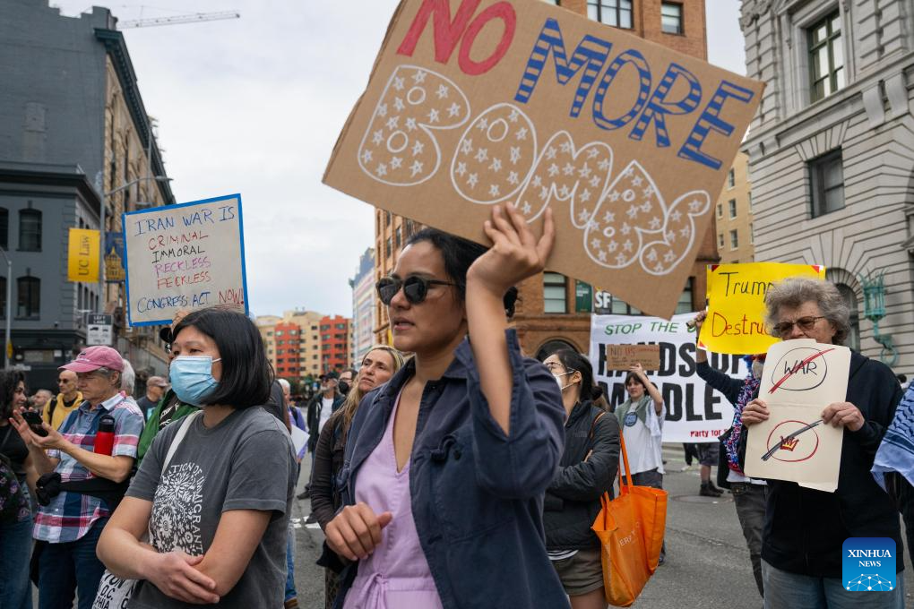 People attend a protest against U.S.-Israeli strikes on Iran in San Francisco, the United States, Feb. 28, 2026. (Photo by Ziyu Julian Zhu/Xinhua) Th…[More]