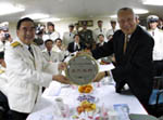 Wu Fuchun, commander of the PLA navy task group, gave a briefing on the fleet to Tung Chee Hwa and accompanying officials. This was followed by an inspection tour of the facilities on board of Shenzhen, where more than 500 officers and soldiers of the navy fleet stood still in high spirit to receive the inspection.