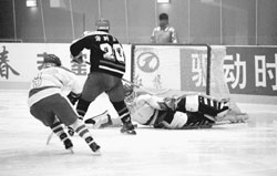 Photo: Hong Kong ice hockey fighters countering those of Haisi at the Ninth National Winter Games in Harbin
