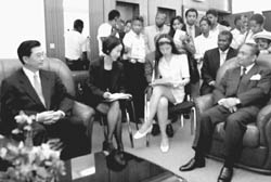 Pictured here is Chinese Vice-President Hu Jintao meeting on Sunday with Ange C.F. Andrianarisoa, President of the Madagascar National Assembly in Antananarivo.