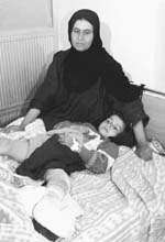 An Iraqi woman looks after her child who was injured in the US-British attack on Basra. 11 people have been killed and 59 were injured during the air raid on January 25.