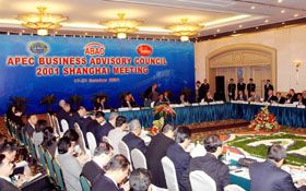 | The 4th Meeting of 2001 APEC Business Advisory Council (ABAC) opens in the morning of 19 October in Regal International East Asia Hotel, Shanghai. 179 ABAC delegates attended the meeting which attracted the largest number of participants in recent years. Mr. Qin Xiao, ABAC Chair and Vice President of China International Trust and Investment Corporation (CITIC), presided over the meeting. (Full Story) |