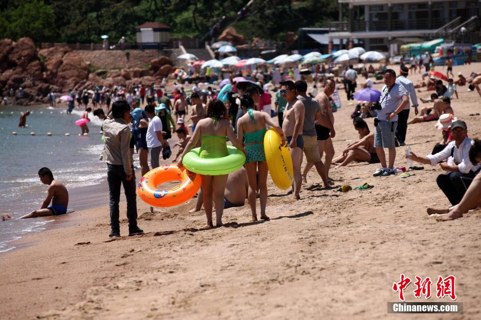 People take a rest on a beach in Qingdao, east China's Shandong province on May 28. The temperatures reached 35 degrees Celsius. (CNS/Xu Chongde)