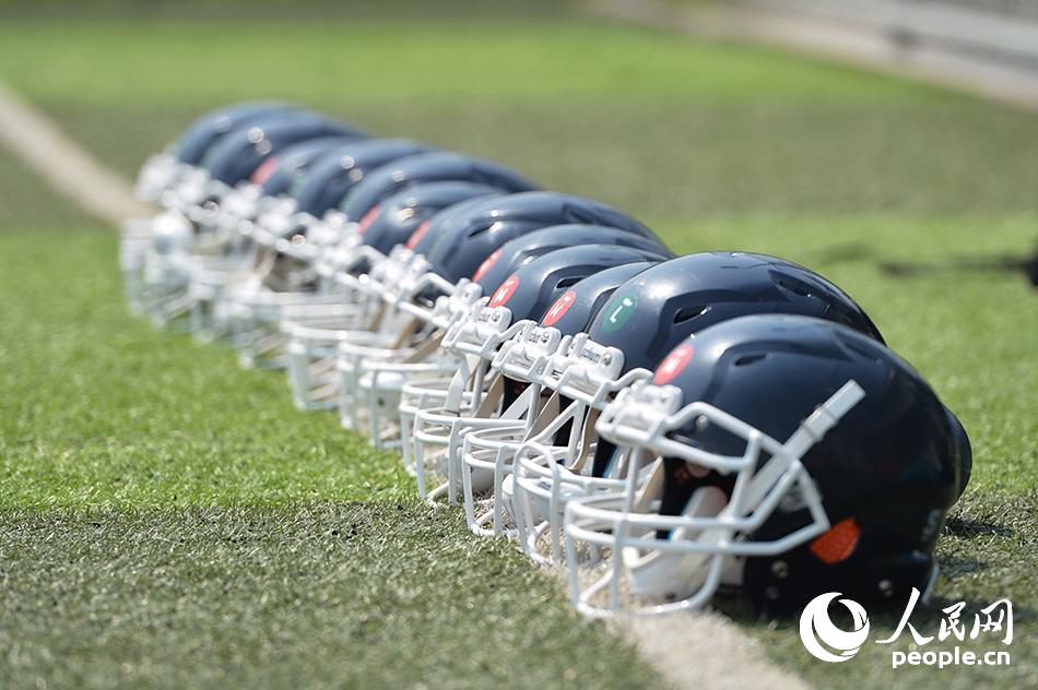 You can always see a group of little boys dressed in professional equipment taking part in American football training in Beijing Olympic Forest Park. Catch, throw and offend… they learn every move with total concentration.