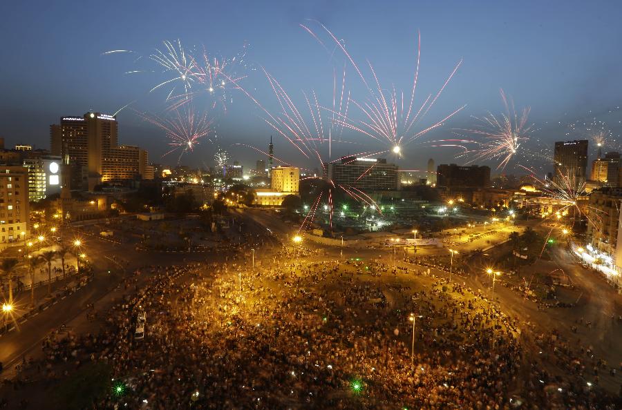 On June 3, Egyptians gather in Tahrir square to celebrate former Egyptian army chief Abdel Fattah al-Sisi's victory in the presidential vote in Cairo. (Xinhua/AP)
