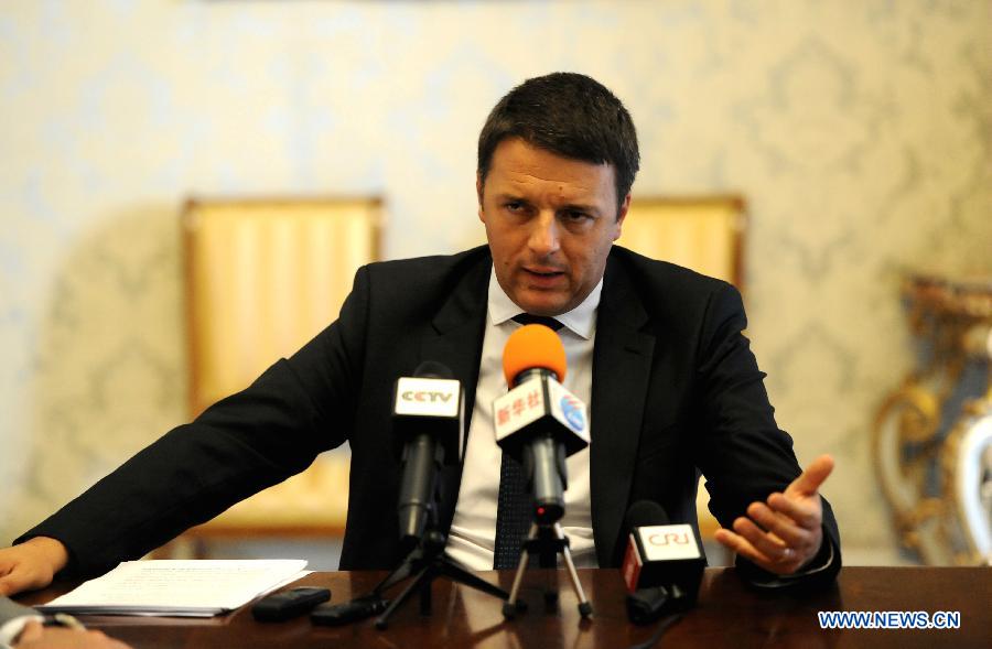 | Italian Prime Minister Matteo Renzi speaks during an interview with Chinese media in Rome's Chigi Palace on June 3, 2014. Italy hopes to boost its trade partnership as well as cultural and political ties with China, Italian Prime Minister Matteo Renzi told Xinhua in a recent interview. Renzi, who will pay an official visit to China from June 10 to 12, praised the progress of Italy-China commercial ties. (Xinhua/Xu Nizhi) |