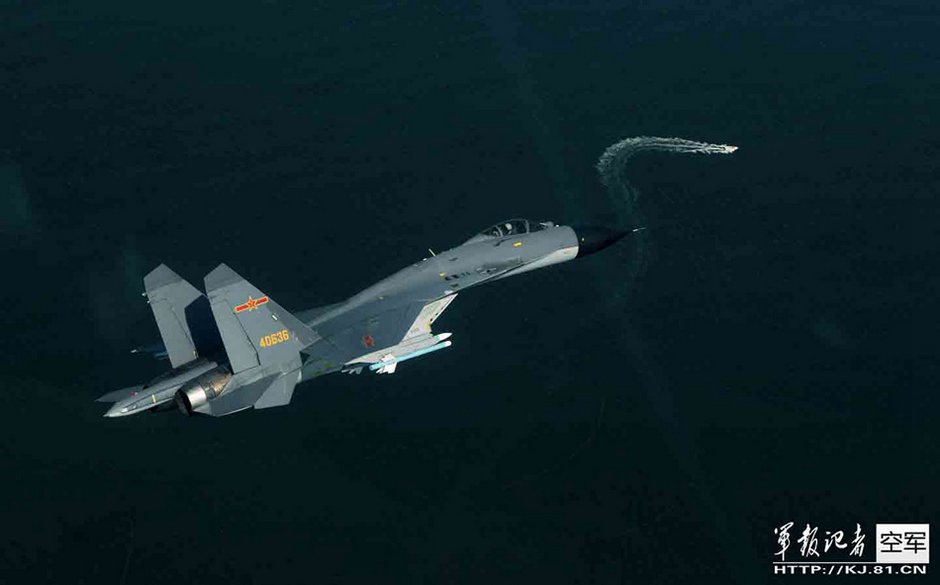 | A photo of a warplane of PLA Air Force taken by Cui Wenbin, a photographer known for his works of military theme. (KJ.81.cn) |
