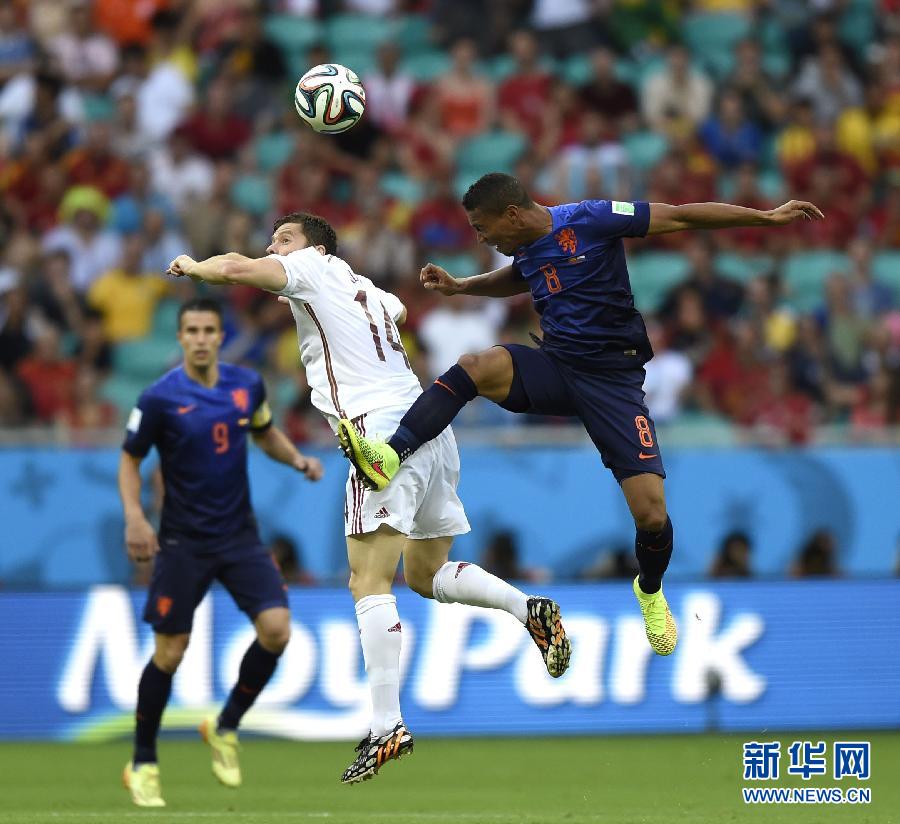 Paced by their talismen Arjen Robben and Robin van Persie, Netherlands notched a stunning 5-1 victory against Spain in the Group B opener here on Friday in what was a rematch of the 2010 World Cup final in South Africa. (Photo: Xinhua)