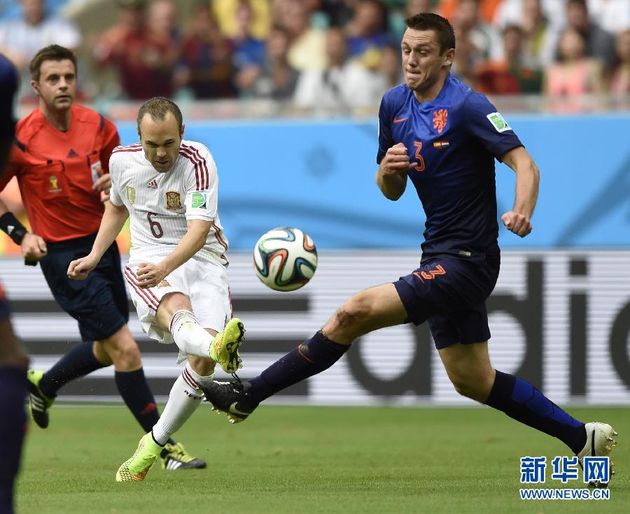 | Paced by their talismen Arjen Robben and Robin van Persie, Netherlands notched a stunning 5-1 victory against Spain in the Group B opener here on Friday in what was a rematch of the 2010 World Cup final in South Africa. (Photo: Xinhua) |