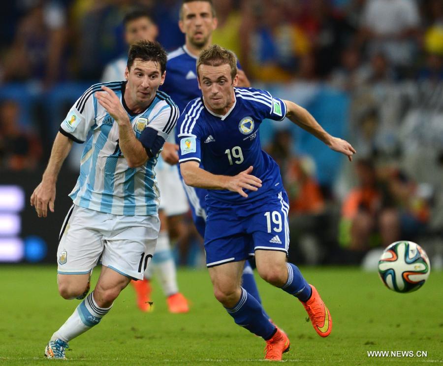 Argentina won 2-1 over with Bosnia and Herzegovina during a Group F match between Argentina and Bosnia and Herzegovina of 2014 FIFA World Cup at the Estadio de Maracana Stadium in Rio de Janeiro, Brazil, June 15, 2014.(Photo Source: Xinhua)