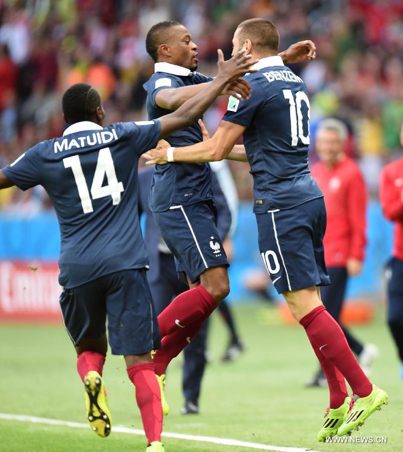 French striker Karim Benzema scored twice on Jun 15, 2014, leading "Les Bleus" to a 3-0 victory over Honduras in a Group E meeting. (Photo Source: Xinhua)