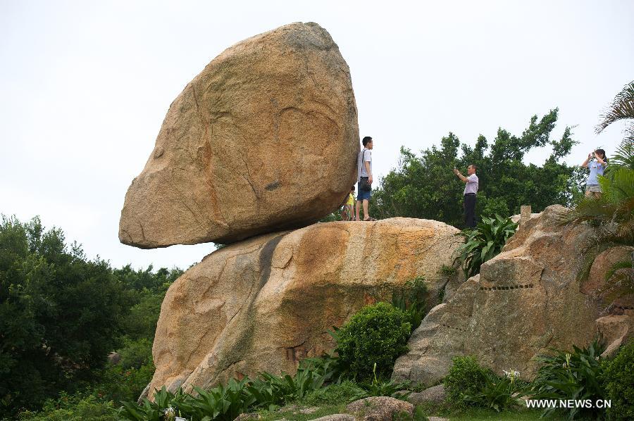 Tourists enjoy themselves at Fengdongshi scenic spot on Dongshan Island, southeast China's Fujian Province, June 20, 2014. Dongshan Island, the second largest island in Fujian, is located in the southeast of Fujian and with Taiwan across the sea to the east. (Xinhua/Jiang Kehong)