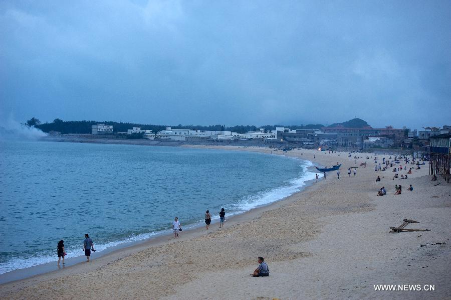 | People enjoy themselves on Nanmenwan beach of Dongshan Island, southeast China's Fujian Province, June 20, 2014. Dongshan Island, the second largest island in Fujian, is located in the southeast of Fujian and with Taiwan across the sea to the east. (Xinhua/Jiang Kehong) |