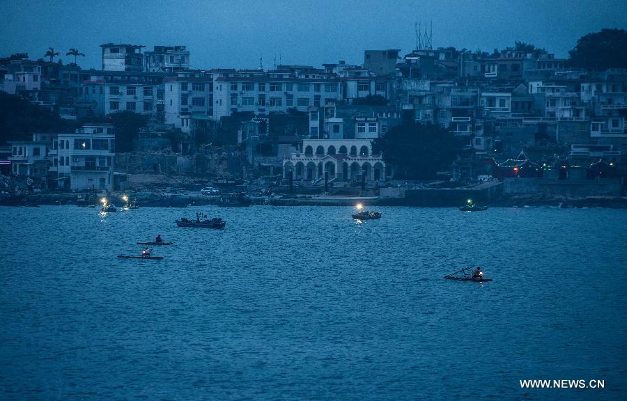 Photo taken on June 20, 2014 shows local fishing boats on the Nanmenwan sea area of Dongshan Island, southeast China's Fujian Province. Dongshan Island, the second largest island in Fujian, is located in the southeast of Fujian and with Taiwan across the sea to the east. (Xinhua/Shen Hong)