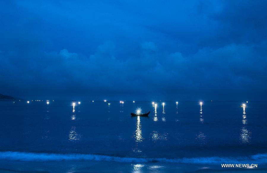 Photo taken on June 20, 2014 shows local fishing boats on the Nanmenwan sea area of Dongshan Island, southeast China's Fujian Province. Dongshan Island, the second largest island in Fujian, is located in the southeast of Fujian and with Taiwan across the sea to the east. (Xinhua/Shen Hong)