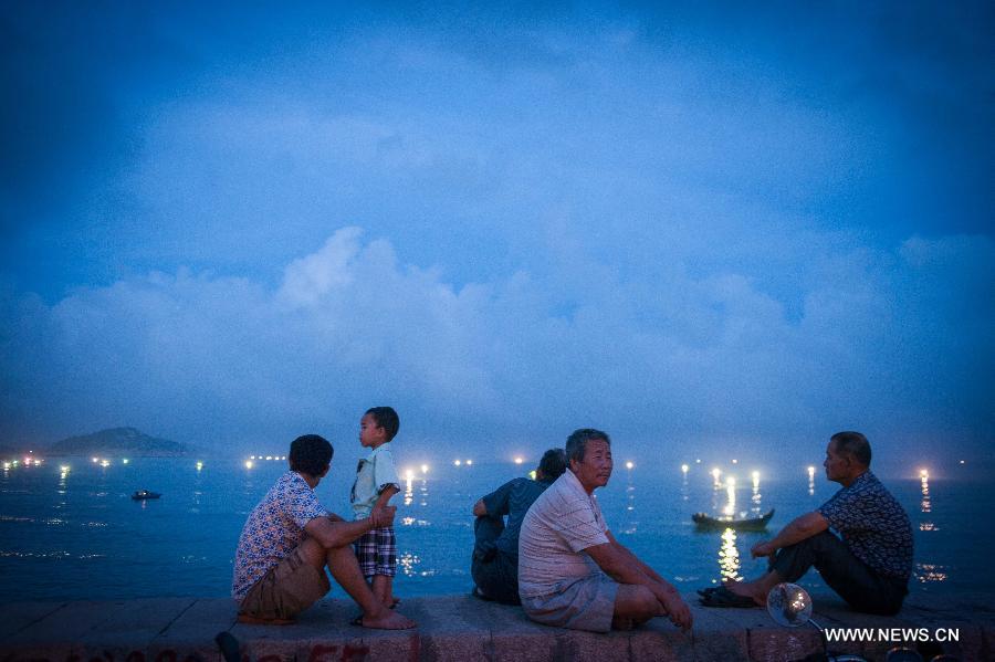 People enjoy the coolness by the sea at dusk on Dongshan Island, southeast China's Fujian Province, June 20, 2014. Dongshan Island, the second largest island in Fujian, is located in the southeast of Fujian and with Taiwan across the sea to the east. (Xinhua/Shen Hong)