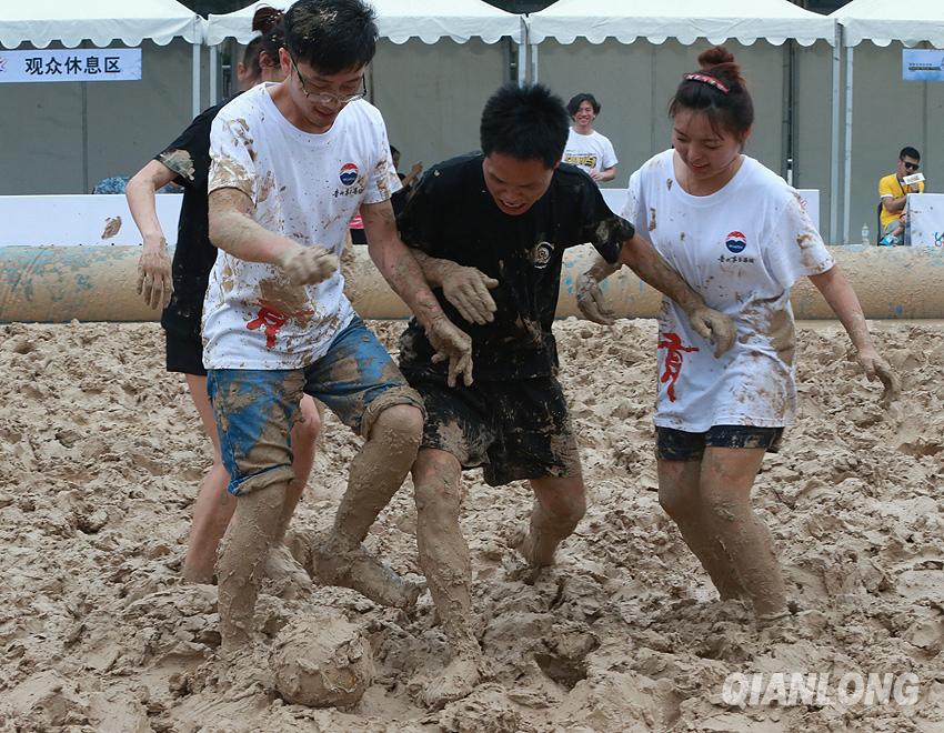 The 2014 mud football world cup is held in Beijing, which attracts 300 competitors. The champion team may have the chance to participate in the finals in Britain. (Qianlong/Qi Lianmin)
