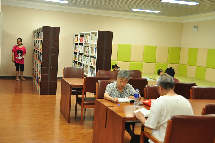 Residents read in the library of the third community center. (People’s Daily Online/ Wang Xin)