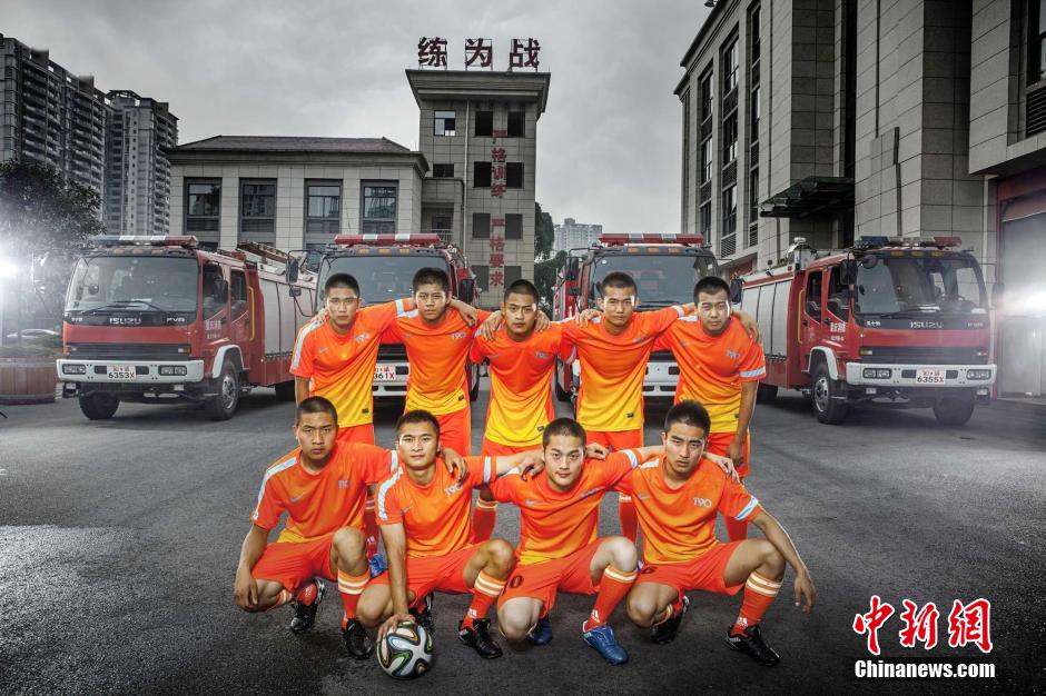 The photos show the smart Chongqin firefighters in soccer uniforms. (Photo/Chinanews.com)