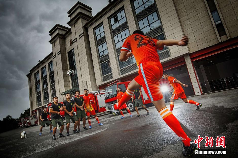 The photos show the smart Chongqin firefighters in soccer uniforms. (Photo/Chinanews.com)