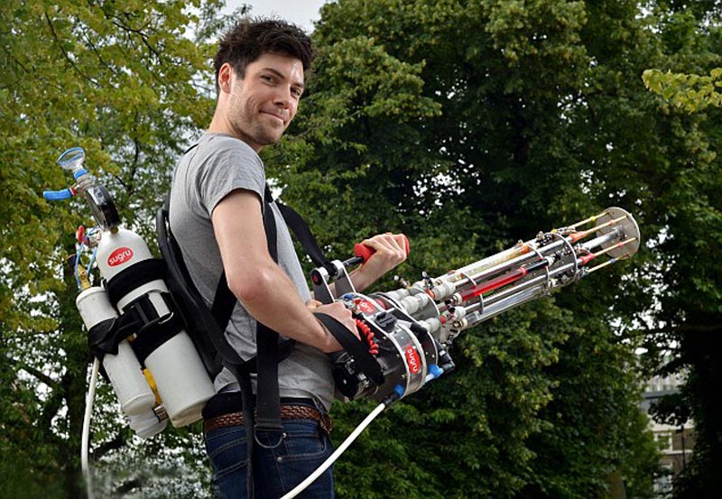 An engineer in London creates the world's most complex "Gatling" water gun for the first time with a range of 12 meters. (Photo source: china.com.cn)