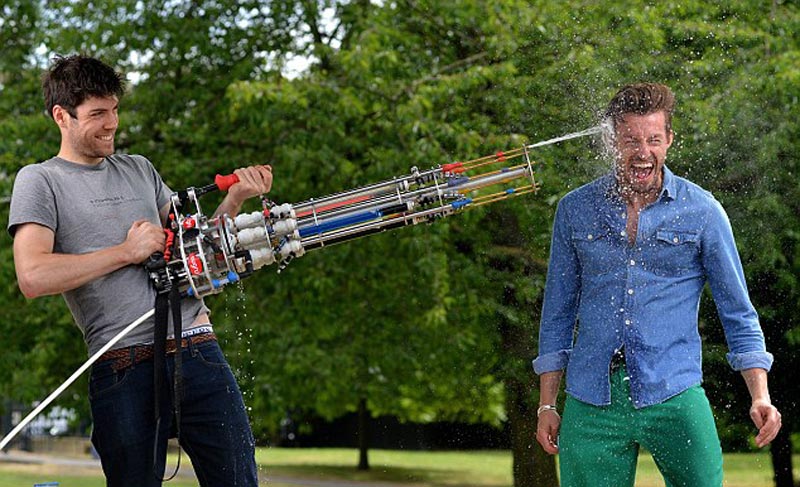 An engineer in London creates the world's most complex "Gatling" water gun for the first time with a range of 12 meters. (Photo source: china.com.cn)