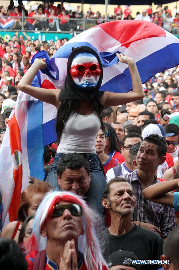 | A Costa Rica's fan poses before a Round of 16 match between Costa Rica and Greece of 2014 FIFA World Cup in San Jose, capital of Costa Rica, on June 29, 2014. (Xinhua/Kent Gilbert) |