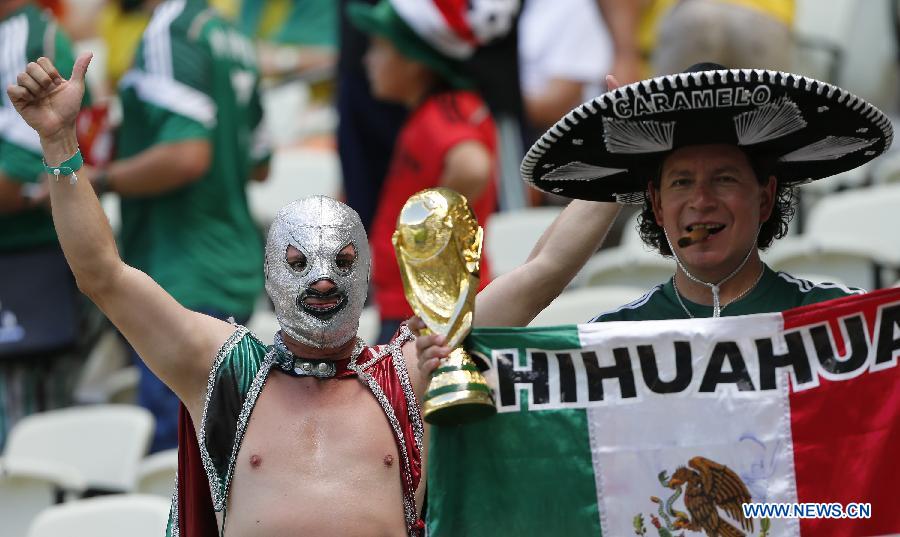 Mexico's fans wait before a Round of 16 match between Mexico and Netherlands of 2014 FIFA World Cup at the Estadio Castelao Stadium in Fortaleza, Brazil, on June 29, 2014. (Xinhua/Zhou Lei)