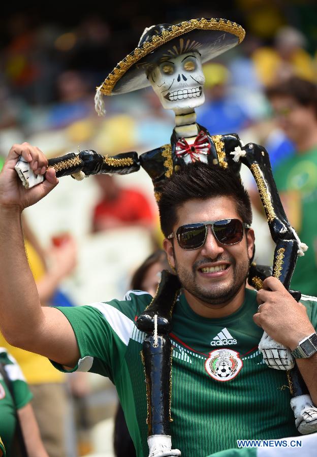 A Mexico's fan cheers prior to a Round of 16 match between Netherlands and Mexico of 2014 FIFA World Cup at the Estadio Castelao Stadium in Fortaleza, Brazil, on June 29, 2014.(Xinhua/Li Ga)