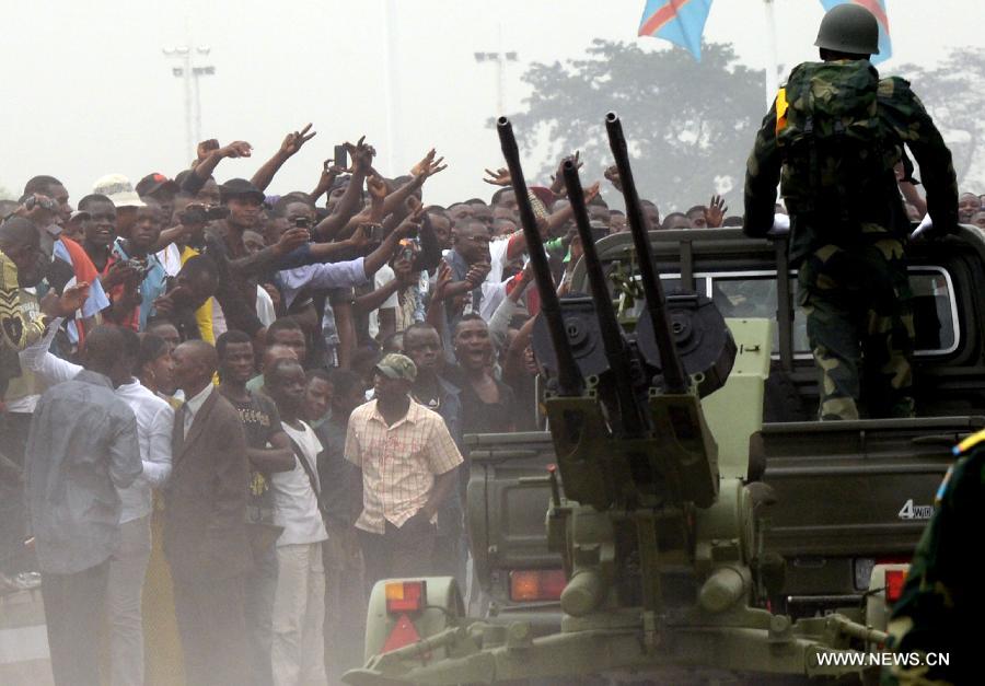 | People attend a parade in Kinshasa, the Democratic Republic of Congo (DR Congo), June 30, 2014. DR Congo held a parade to commemorate the 54th anniversary of independence Monday. (Xinhua/Wang Bo) |