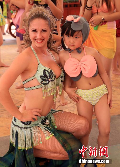 A show with "World Cup" theme is staged in the Playa Maya Water Park in Shanghai on June 29, 2014. Hot show performed by football babies and Samba dancers attracted a lot of visitors. (Photo/CNS)