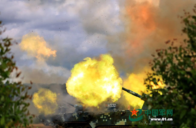 A brigade of the PLA Marine Corps fires missiles, artillery and mortars Tuesday during an exercise to test training results and improve overall assault and striking capabilities. (Photo/www.81.cn)