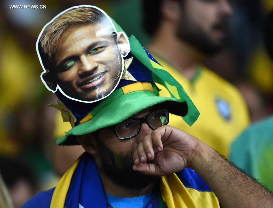 A Brazil's fan reacts while watching a semifinal match between Brazil and Germany of 2014 FIFA World Cup at the Estadio Mineirao Stadium in Belo Horizonte, Brazil, on July 8, 2014. Germany won 7-1 over Brazil and qualified for the final on Tuesday.(Xinhua/Li Ga)