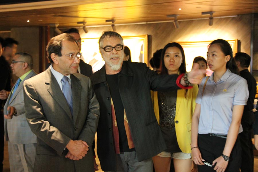 Valdemar Carneiro Leao (left), Brazilian ambassador, visits the exhibition. (People's Daily Online/Huang Jin)