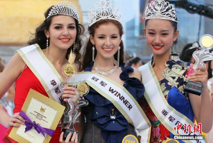 The 2014 International Gold and Jewelry Beauty Queens Contest in held in northeast China's Liaoning province, with contestants from Argentina, Australia, Germany, Finland, Russia, Ukraine, Poland, Mongolia and China. (China News Service/Qian Xingqiang)