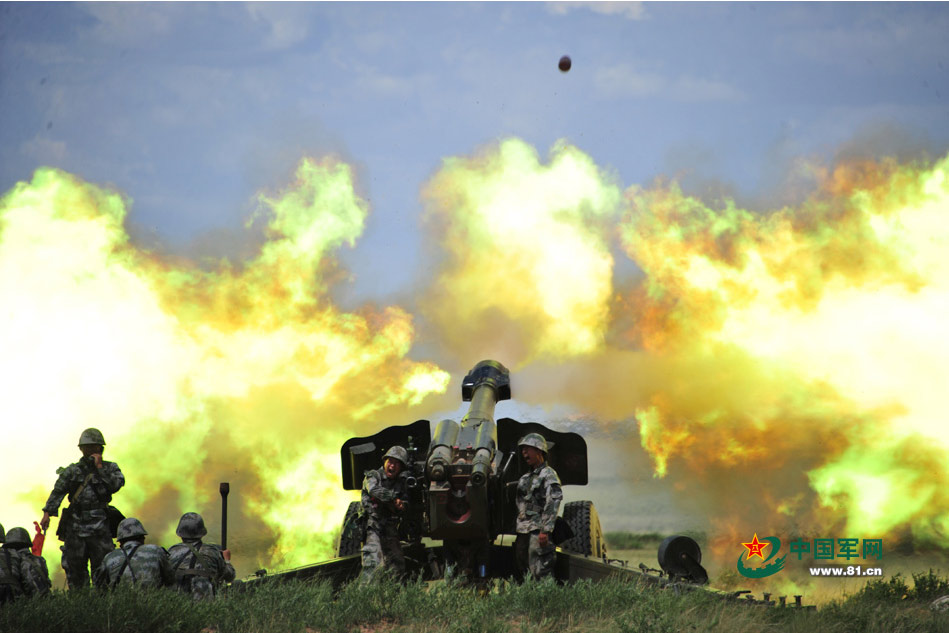 An Artillery Regiment of Beijing Military Region held real-combat exercise at the end of July. The soldiers are conducting live firing drill. (Chinamil.com.cn/ Shen Zelin)