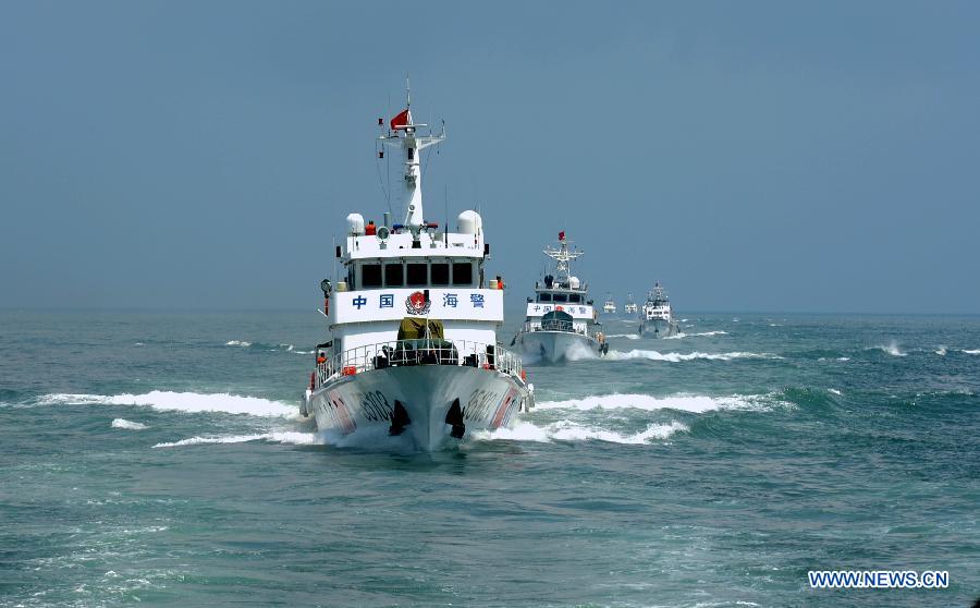 | Naval vessels of Fujian Coast Guard Forces take part in an offshore drill at the Meizhou Bay, southeast China's Fujian Province, Aug. 16, 2014. (Xinhua/Zhang Guojun) |