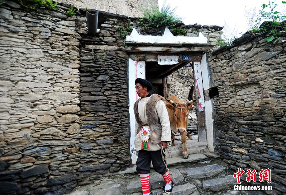 | September 1 is the day for Qiang people to worship their god “baihaha”. They dress up to attend the ceremony held in the Baikong temple, where farming culture, traditional magic are displayed. (Chinanews.com/An Yuan) |