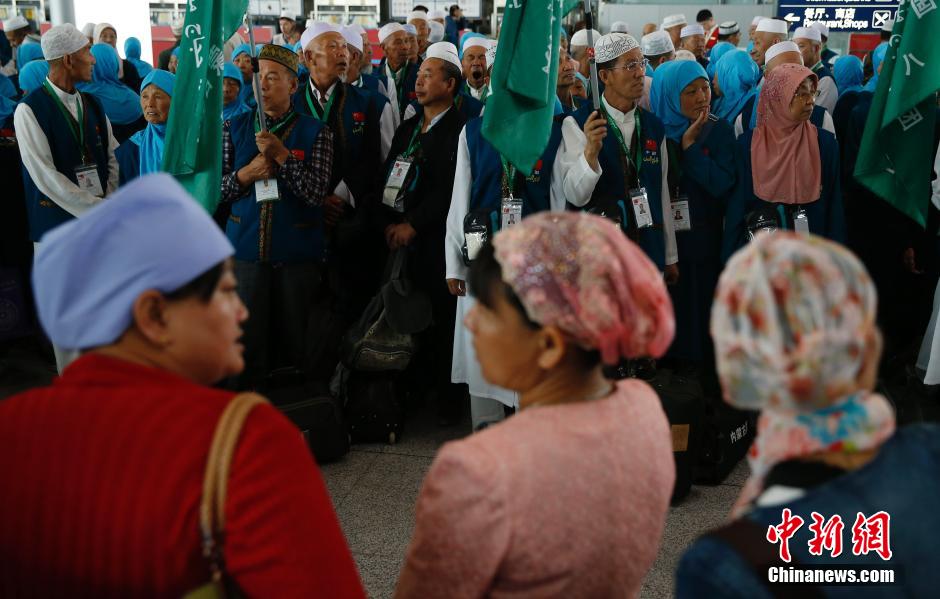 297 Chinese muslims from Inner Mongolia Autonomous Region gather in Beijing Capital International Airport on Sept. 17, 2014, ready to set off to Mecca for pilgrimage. Leaders from China's State Administration for Religious Affairs and the Islamic Association of China, as well as Yahya Al-Zaid, the Saudi Arabian Ambassador to China were seen at the airport to see the pilgrims off. (Photo/Chinanews.com)