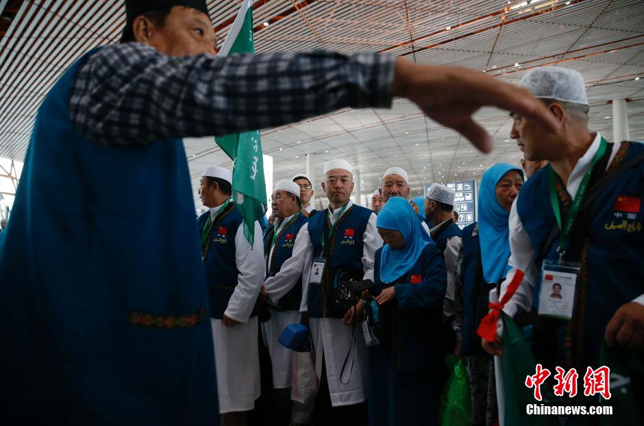 297 Chinese muslims from Inner Mongolia Autonomous Region gather in Beijing Capital International Airport on Sept. 17, 2014, ready to set off to Mecca for pilgrimage. Leaders from China's State Administration for Religious Affairs and the Islamic Association of China, as well as Yahya Al-Zaid, the Saudi Arabian Ambassador to China were seen at the airport to see the pilgrims off. (Photo/Chinanews.com)
