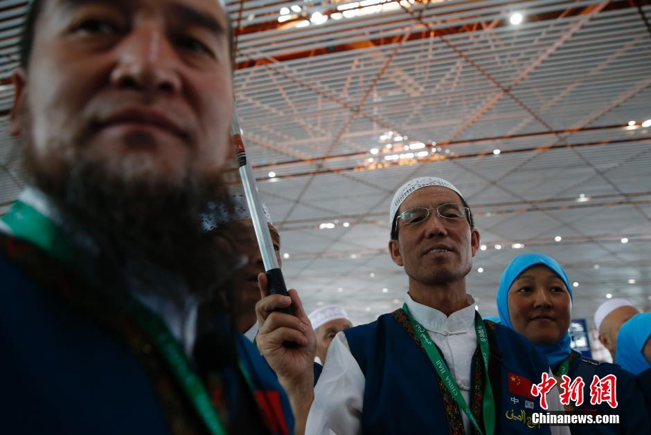 297 Chinese muslims from Inner Mongolia Autonomous Region gather in Beijing Capital International Airport on Sept. 17, 2014, ready to set off to Mecca for pilgrimage. Leaders from China's State Administration for Religious Affairs and the Islamic Association of China, as well as Yahya Al-Zaid, the Saudi Arabian Ambassador to China were seen at the airport to see the pilgrims off. (Photo/Chinanews.com)