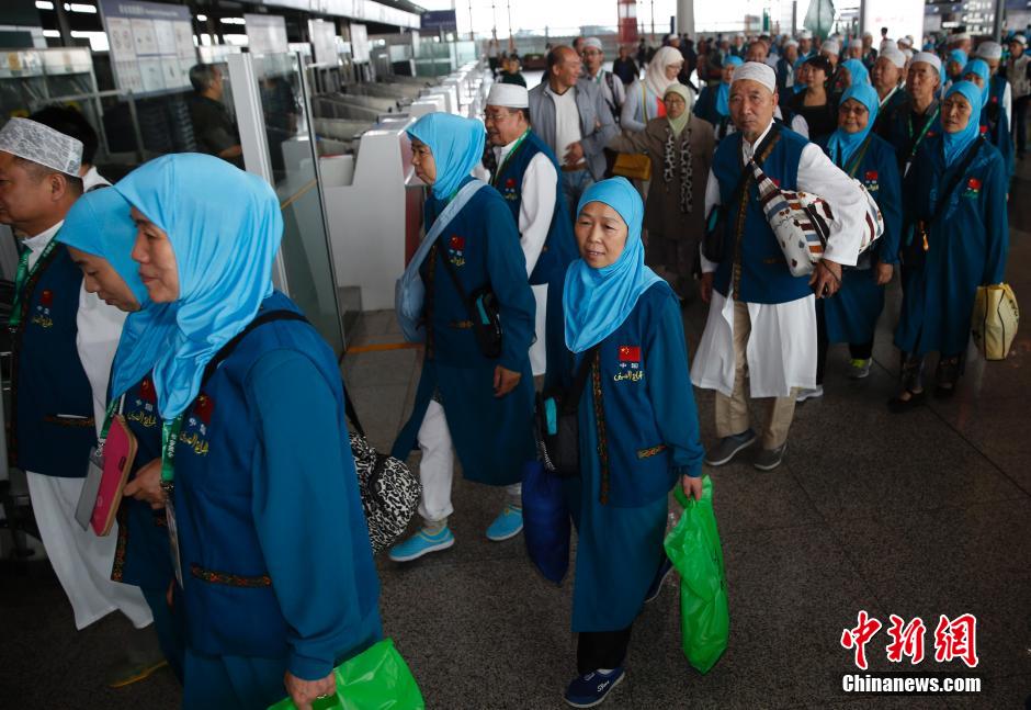 297 Chinese muslims from Inner Mongolia Autonomous Region gather in Beijing Capital International Airport on Sept. 17, 2014, ready to set off to Mecca for pilgrimage. Leaders from China's State Administration for Religious Affairs and the Islamic Association of China, as well as Yahya Al-Zaid, the Saudi Arabian Ambassador to China were seen at the airport to see the pilgrims off. (Photo/Chinanews.com)