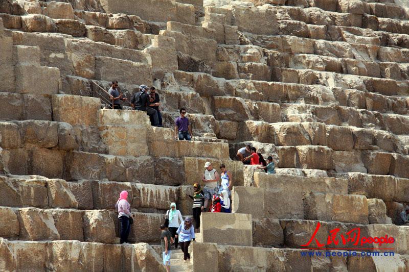 Tourists climb the step pyramid. (People.cn/ Li Luying)