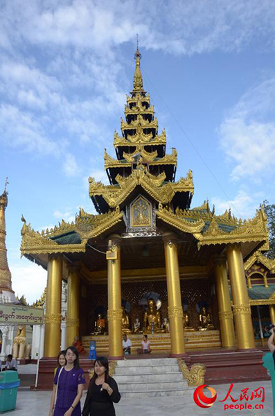Visitors must take off shoes when they enter the Shwedagon Pagoda. (People’s Daily Online/Hu Changming)