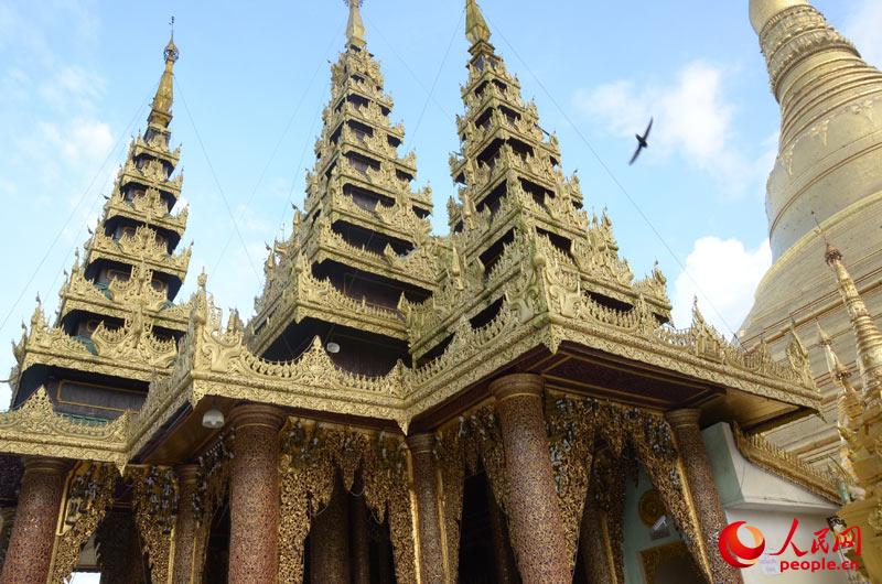 There are 64 different small towers around the Shwedagon Pagoda. (People’s Daily Online/Hu Changming)