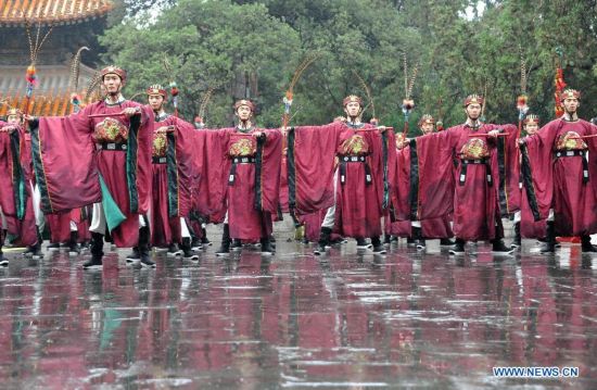 A memorial ceremony to mark the 2,565th anniversary of Confucius' birth is held at the Confucius Temple in Qufu, east China's Shandong Province, Sept. 28, 2014. (Xinhua/Xu Suhui)