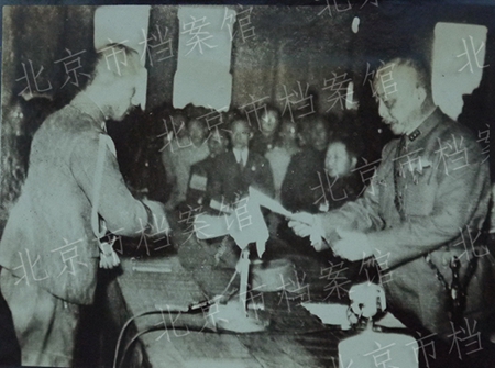 | Chen Yi accepted the surrender of General Ando Rikichi on Oct. 25, 1945.(Photo/Beijing Municipal Archives) |