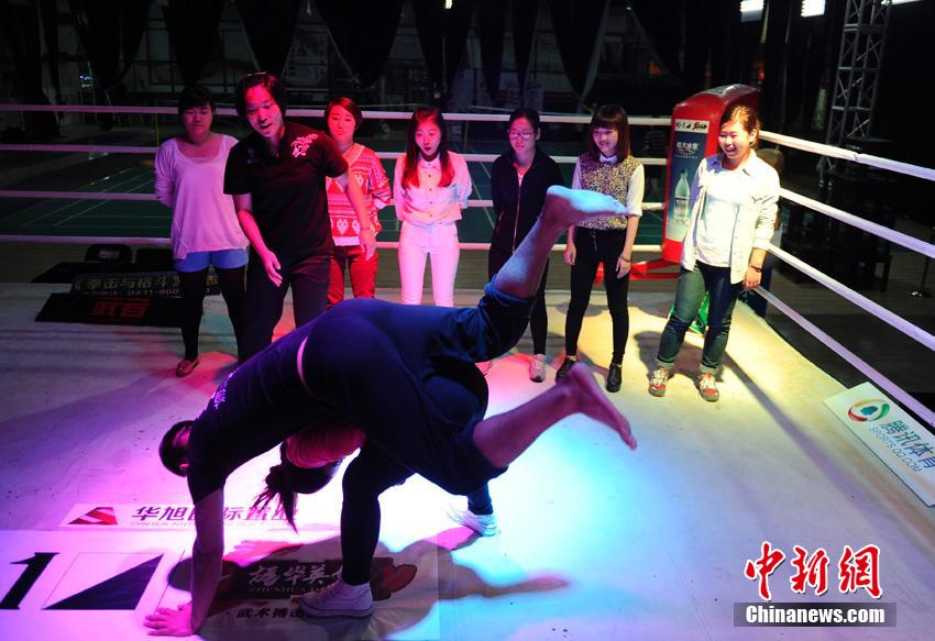 The women practice self-defense very hard. (Chinanews/Zhang Yao)