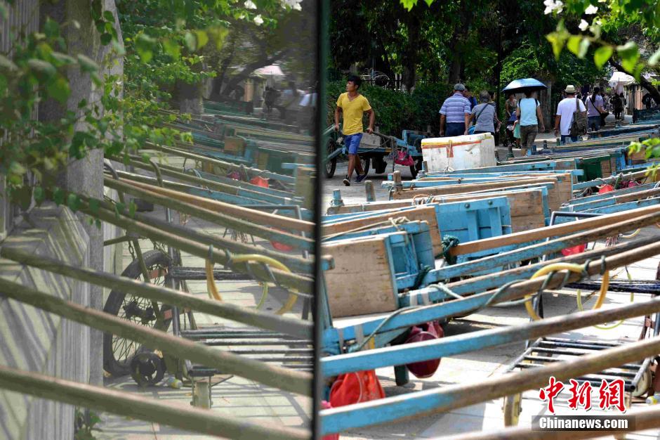 Battery cars for people and handcarts for goods are the two kinds of vehicles on the island. (CNS/Zhang Bin)