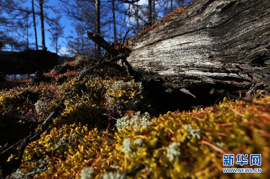 Photo taken on October 12, 2014 shows moss and dead wood from the tree in Arxan forests in Dahinggan Mountain, north China’s Inner Mongolia Autonomous Region. (Photo/Xinhua News Agency)